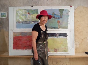 Combiner l'art avec des vacances dans le sud de la France et peindre à travers le paysage était un rêve de longue date. J'ai un penchant pour la peinture impressionniste abstraite et je lis souvent des articles sur les grands artistes de l'époque qui étaient captivés par la lumière douce et délicate du sud de la France. Je souhaitais ardemment peindre de grandes toiles afin de retracer mon propre parcours à travers ce paysage aux lumières changeantes, aux formes, couleurs et textures douces.